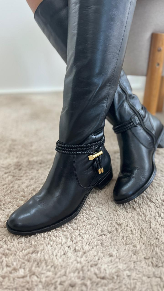 Bota montaria preta trança couro R$648,0...