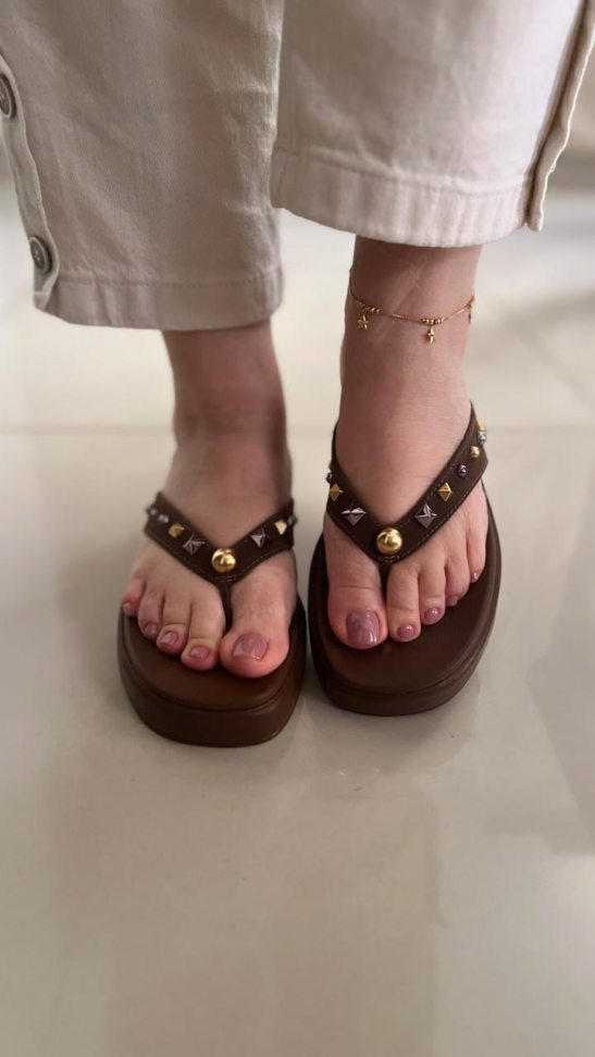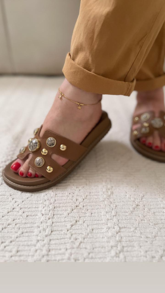 Slide croco Camel laço R$116,00