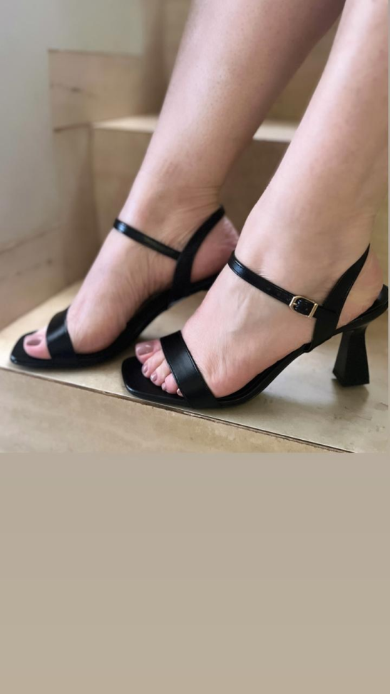 Sandália salto fino preta várias tiras R$276,00